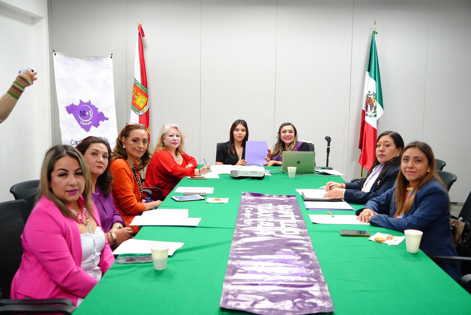 En el Salón Blanco del Congreso del Estado, la diputada Lorena Ruiz García, presidenta de la Comisión de Igualdad de Género y Contra la Trata de Personas de la LXV Legislatura, sostuvo una reunión con mujeres integrantes de la colectiva 50+1 Capítulo Tlaxcala, con el objetivo de recibir y analizar un documento que contiene consideraciones respecto al impacto en la normatividad estatal, sobre las causas que afectan a la población femenina en Tlaxcala.